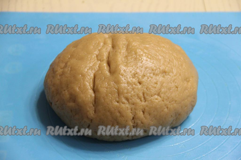Как только тесто начнёт собираться в ком, выложить его на припылённую мукой поверхность и, постепенно добавляя муку, замесить нежное тесто. Тесто должно чуть липнуть к рукам.