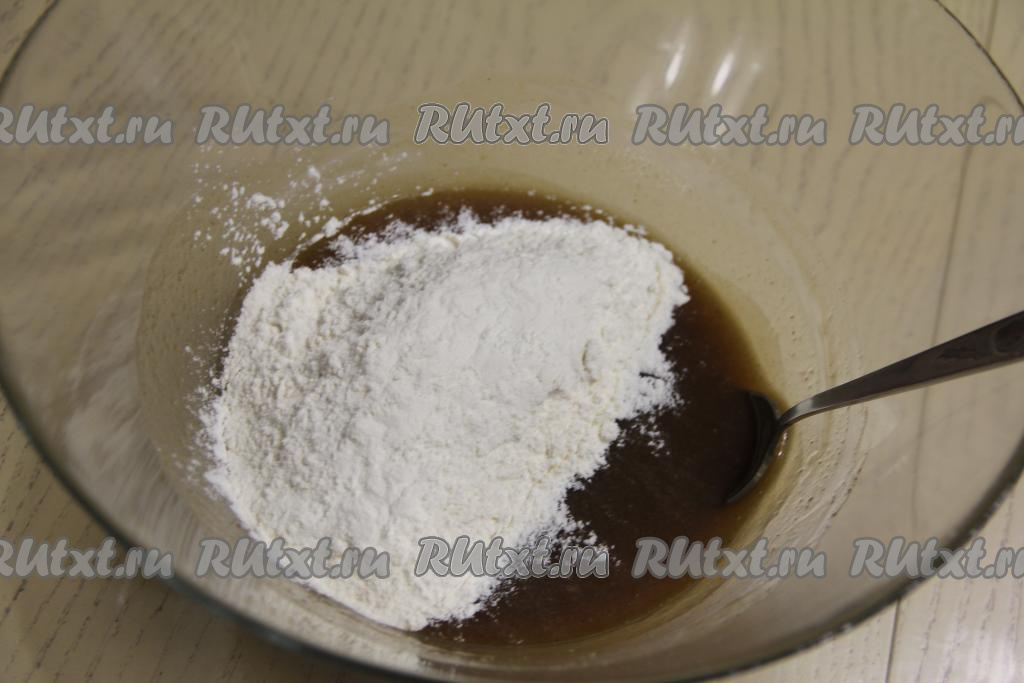 Начать небольшими порциями всыпать просеянную муку, перемешивая тесто сначала ложкой.