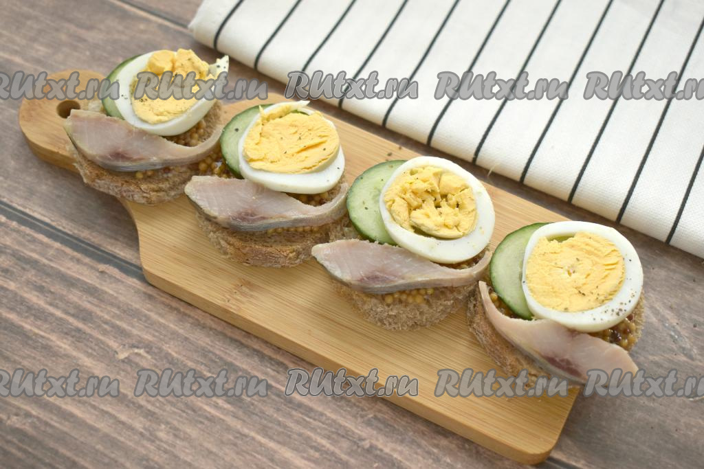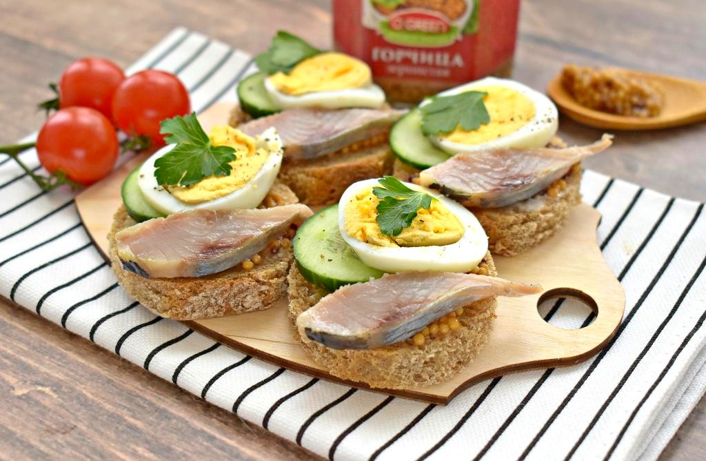 Рецепты простых и вкусных закусок востребованы и в будни, и в праздники. В этот раз предлагаю приготовить аппетитные, сытные бутерброды с селёдкой, зернистой горчицей, свежим огурцом и варёным яйцом. Такая закуска всегда получается вкусной, ведь все ингредиенты в ней удачно сочетаются между собой. Приготовьте бутерброды с селёдкой и горчицей и они удачно впишутся и в повседневное, и в праздничное меню!
