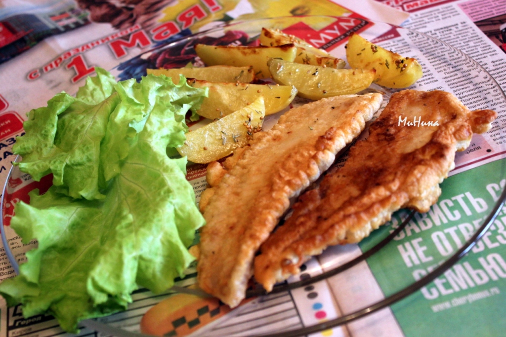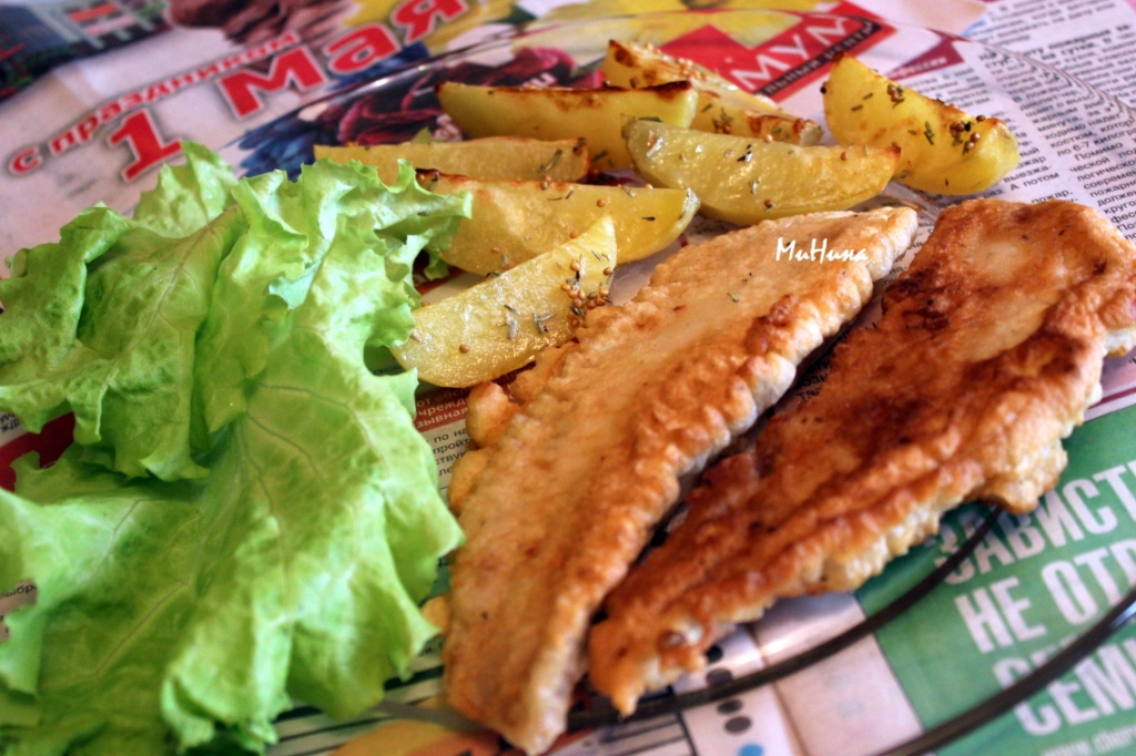Существует классический рецепт, но можно и импровизировать. Мне захотелось в кляр добавить арахисовую пасту, а картофель не жарить во фритюре, а запечь в духовке с розмарином и зерновой горчицей. Как же меня хвалили муж и сыновья... Делюсь рецептом!