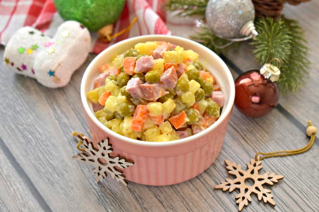 Вот так достаточно просто можно приготовить нежный, вкусный, яркий салат "Оливье" без яиц. Это блюдо станет украшением и повседневного, и праздничного стола!