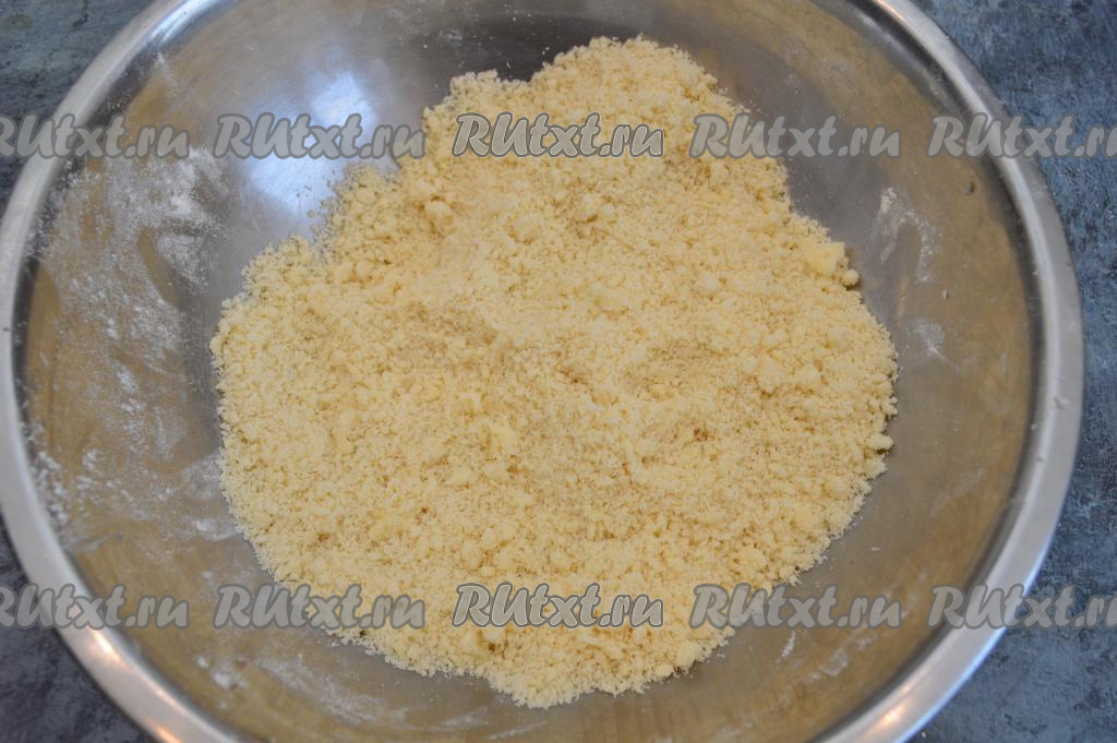 Руками перетереть получившуюся массу до получения мелкой, однородной крошки.