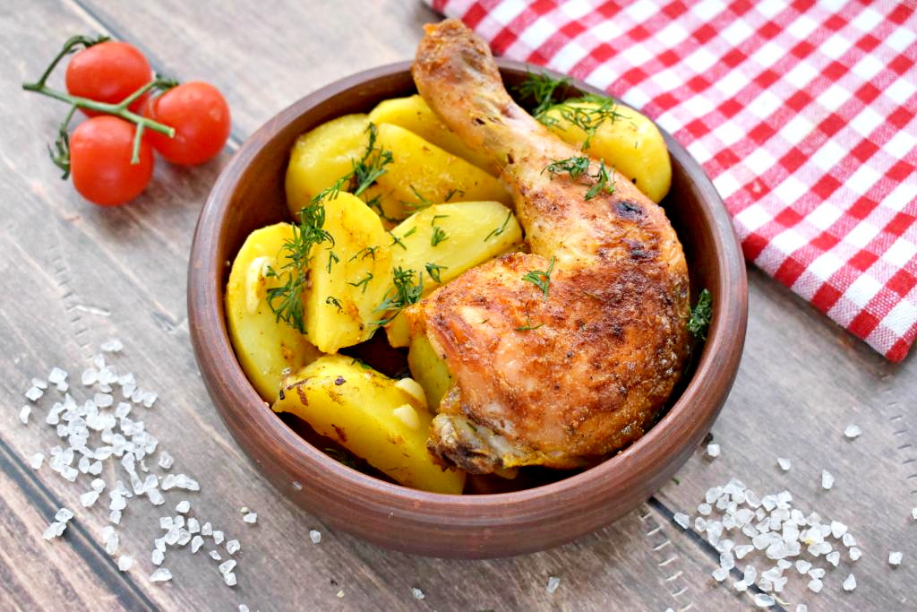 Мне нравятся блюда из курицы, особенно в сочетании с картошкой. Предлагаю запечь в духовке куриные окорочка с дольками картофеля. Мясо в процессе запекания становится сочным, нежным, а картошка - мягкой и аппетитной. Это сытное, вкусное и ароматное блюдо отлично разнообразит повседневное меню. При подаче его можно дополнить свежей зеленью или салатом из овощей.
