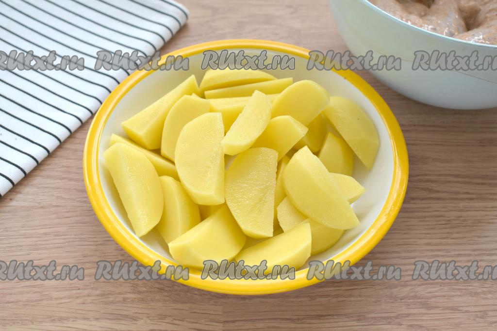 Очищаем картофель и нарезаем его на дольки (дольки не должны быть большой толщины).