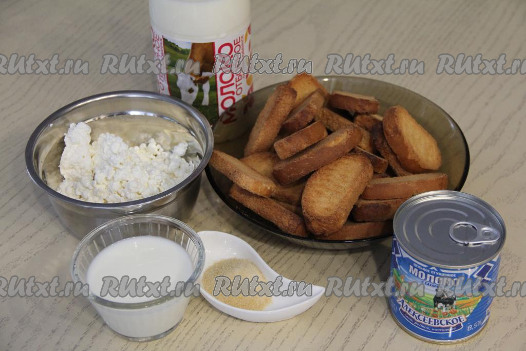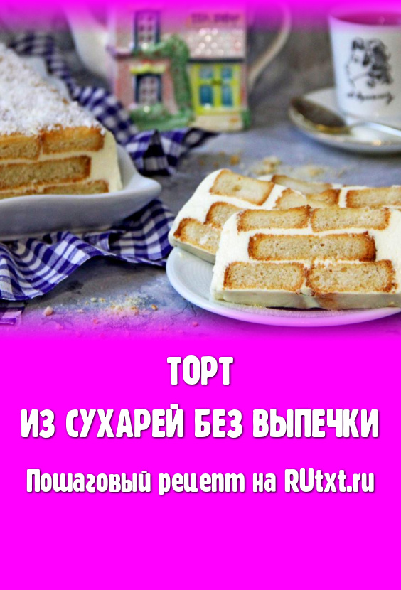 Предлагаю рецепт приготовления без выпечки очень вкусного торта из сладких сухарей. Прослаивать слои этого тортика будем нежнейшим творожным суфле, приготовленным из творога, сгущёнки, молока и желатина. Сухари можно использовать любые сладкие (например, ванильные или сахарные, даже с орешками). Творожная прослойка с желатином прекрасно сочетается с сухариками, тортик хорошо нарезается на кусочки. Этот простой и вкусный торт не требует дополнительного украшения, можно просто присыпать его какао или кокосовой стружкой. Отличный десерт к чаю или кофе, попробуйте!