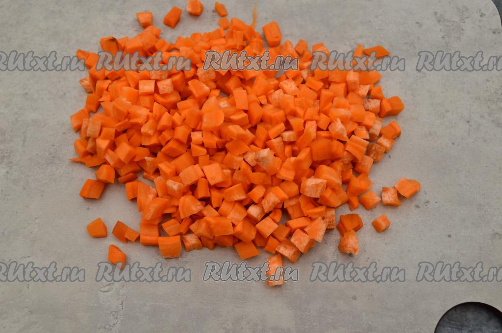 Морковку нарезать на небольшие кубики.