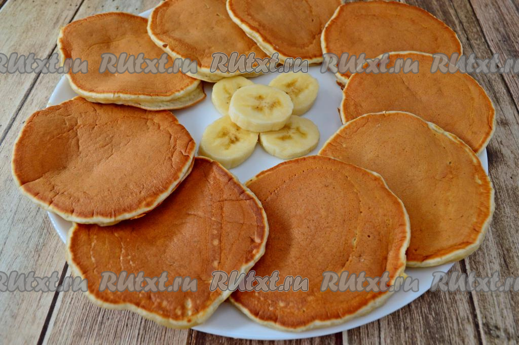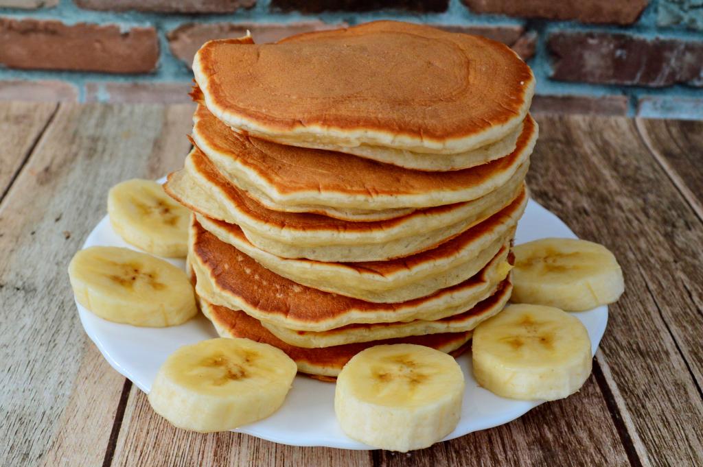 Панкейки, приготовленные на кефире с бананом, получаются пышными, ароматными, в меру сладкими. Их можно есть и тёплыми, и полностью остывшими.