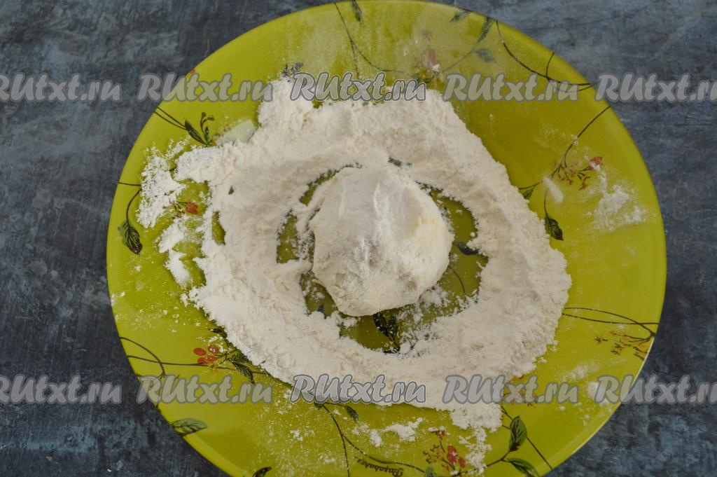 На тарелку насыпать 1 столовую ложку муки. Из части творожно-бананового теста влажными руками сформировать сырник и сразу обвалять его со всех сторон в муке.