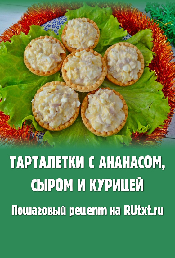 Разнообразные порционные закуски всегда актуальны на праздничных застольях. В этот раз предлагаю приготовить аппетитные тарталетки с сочным, нежным и очень вкусным салатом из ананаса, сыра и курицы. Готовится такая закуска просто, а получается удачной. Главное - купить качественные консервированные ананасы, именно они во многом определяют вкус этого блюда. Приготовьте закуску по этому рецепту и она украсит ваш праздничный стол!