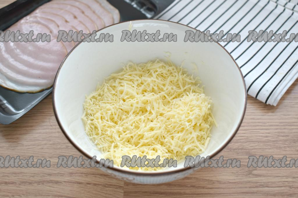 В достаточно глубокую посуду натираем на средней тёрке сыр.