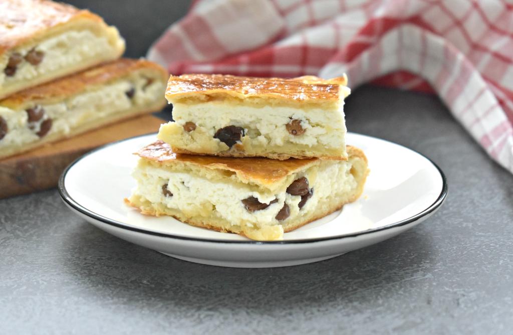 Пирог из слоёного теста с творогом остужаем, нарезаем на порции и подаём к столу. Пирог получился нежным, вкусным, в меру сладким. Такая выпечка отлично дополнит чашку горячего чая или кофе.