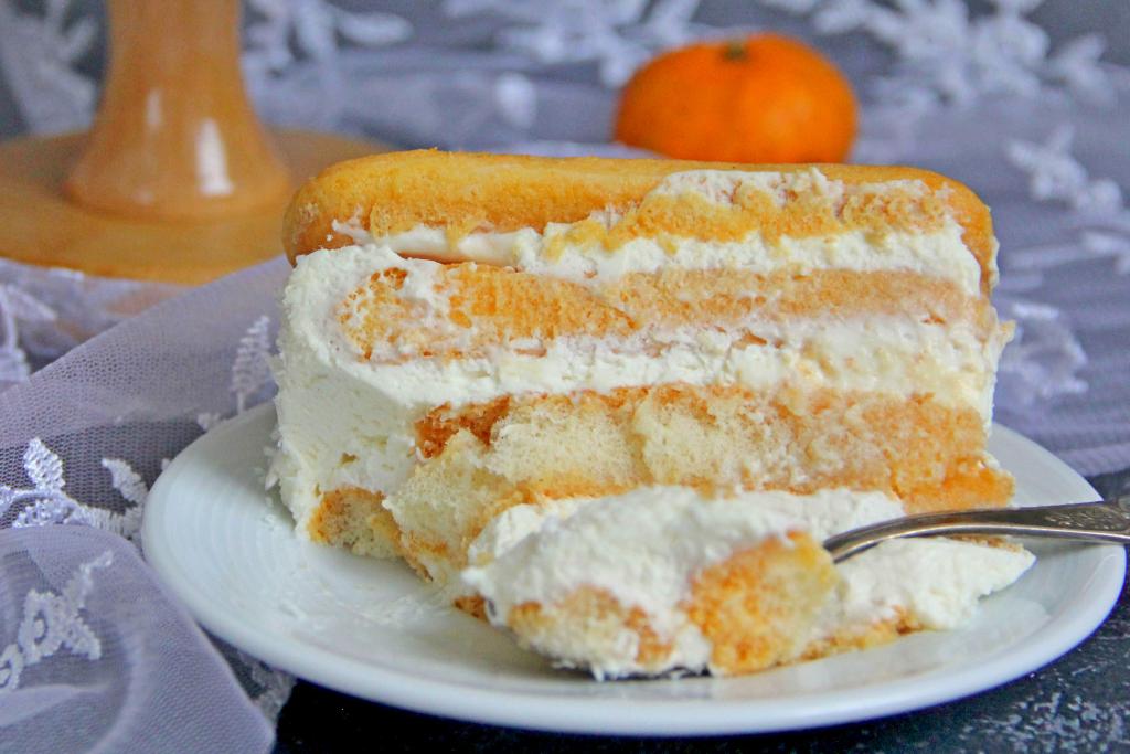 А вот как выглядит в разрезе мандариновый тирамису с кремом маскарпоне. Этот нежный, воздушный десерт буквально тает во рту.