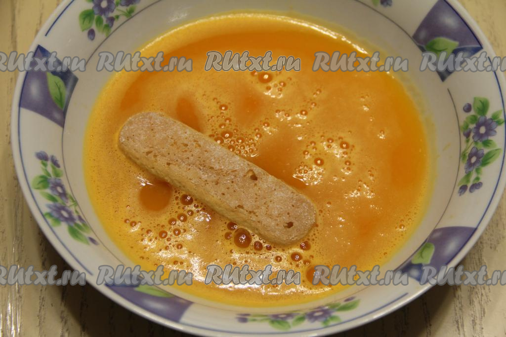 Окунуть печенье "Савоярди" в мандариновый сок с двух сторон.