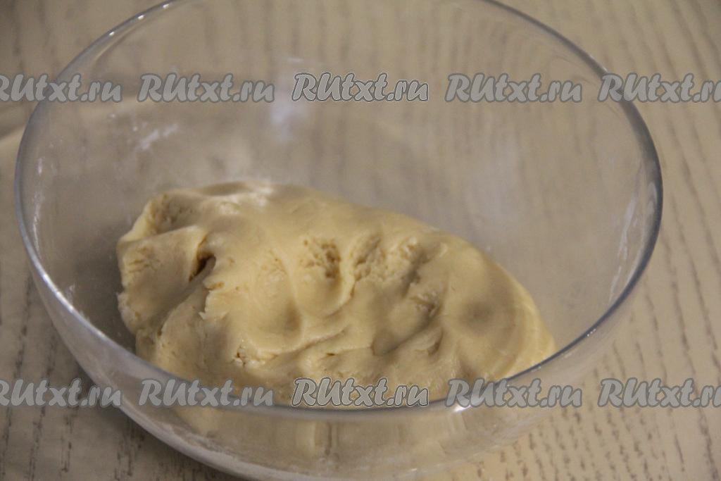 Постепенно добавляя оставшуюся муку, замесить очень мягкое и нежное тесто, собирая его в ком. Как только в процессе замешивания теста перемешивать вилкой станет сложно, продолжайте замешивать тесто руками. Очень важно ориентироваться на консистенцию теста для орешков, а не на количество муки. Долго вымешивать тесто не нужно, достаточно будет просто собрать его в ком.