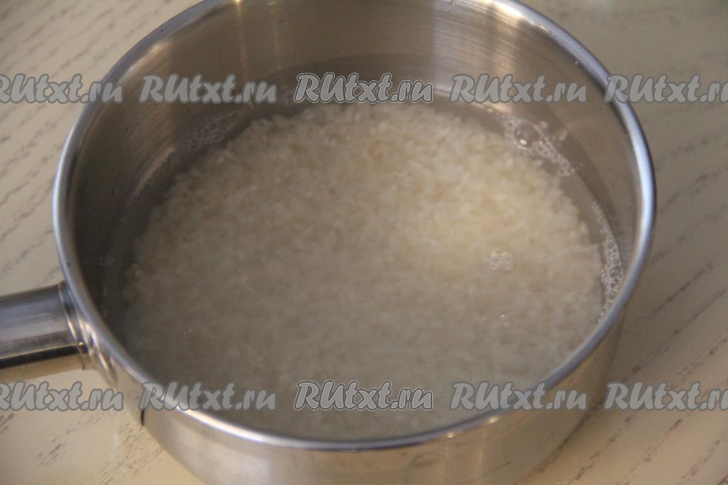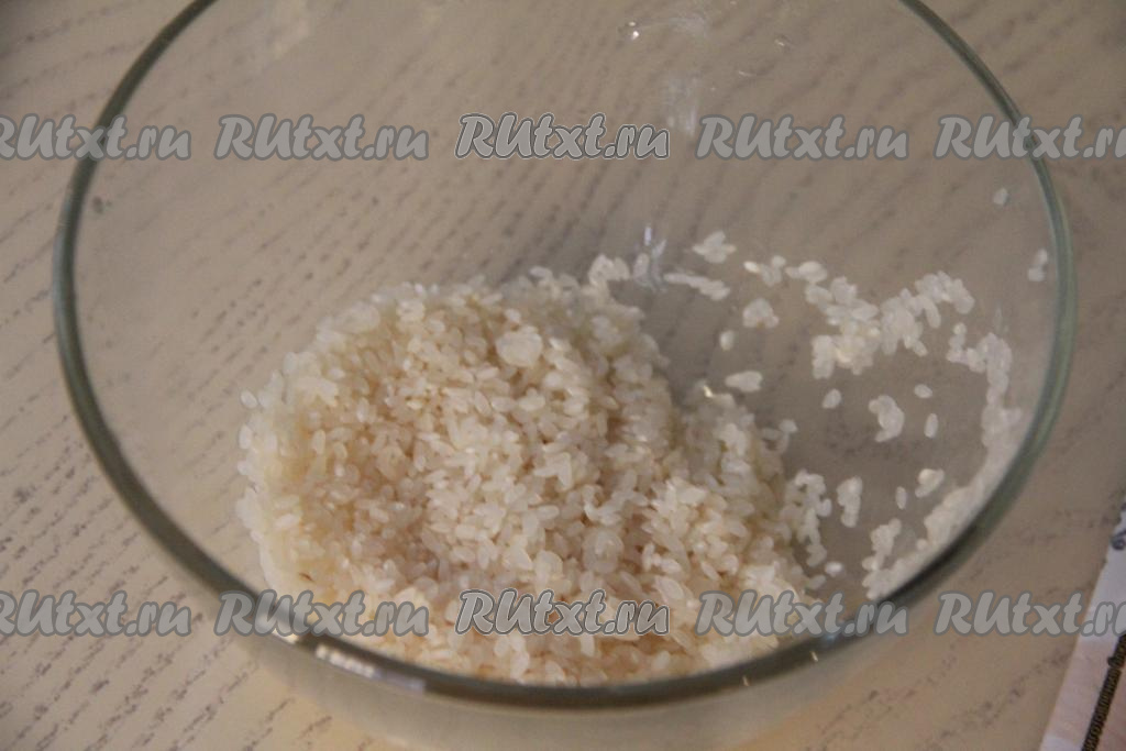 Рис для суши хорошо промыть несколько раз в прохладной воде. Воду менять, пока она не перестанет мутнеть. Так мы вымоем лишний крахмал из риса и он будет более рассыпчатым после варки.
