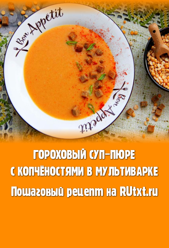 Мультиварка отлично подходит для приготовления первых блюд. В этот раз предлагаю сварить в мультиварке сытный, ароматный и очень вкусный гороховый суп с копчёностями, а затем его пюрировать и подать к столу суп-пюре. Для этого блюда можно взять любые копчёности. Я использовала кусочки копчёной курицы. Гороховый суп-пюре получается бархатистым, с насыщенным вкусом. При подаче это блюдо можно дополнить сухариками.