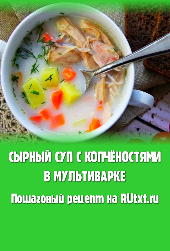 Если вы хотите разнообразить повседневное меню, тогда предлагаю сварить в мультиварке аппетитный, насыщенный сырный суп с копчёностями. Готовится он совсем несложно, получается очень ароматным, сытным и вкусным. Копчёности можно использовать любые, например, подойдут копчёные свиные рёбра или копчёная курица. Уверена, такой суп понравится многим!