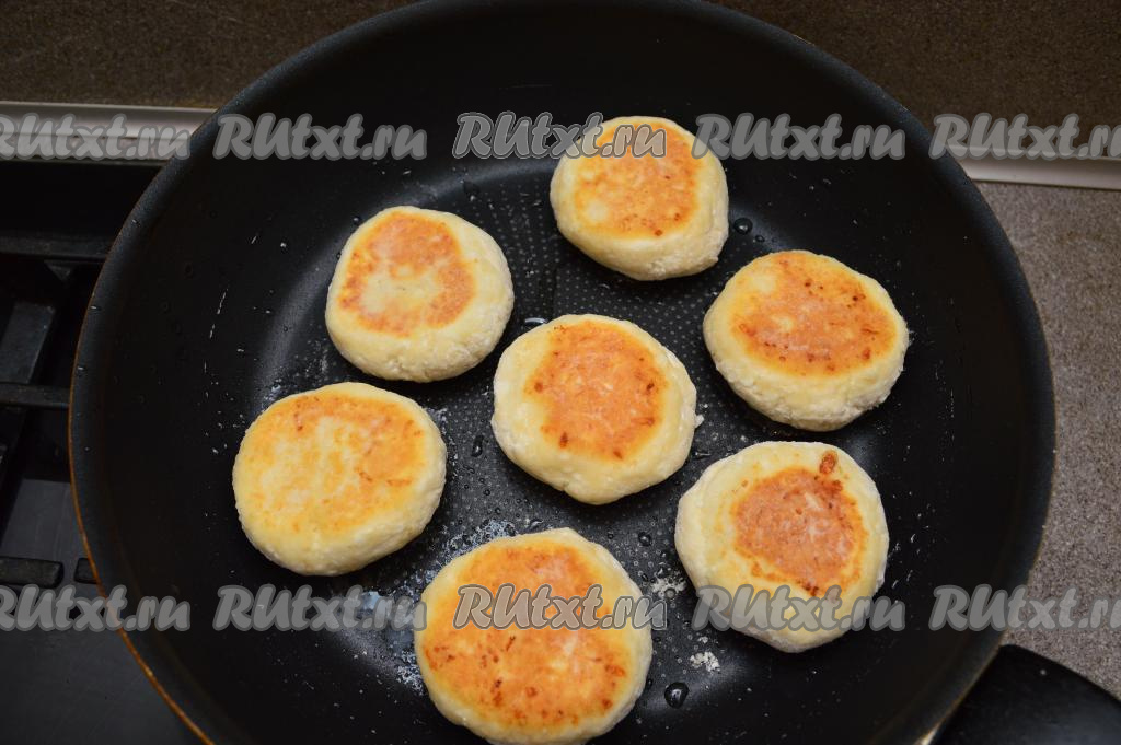 Затем сырники перевернуть и обжаривать с другой стороны ещё 2-3 минуты.