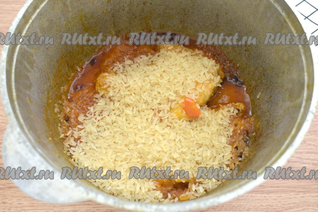 По прошествии 10 минут всыпаем к крылышкам подготовленный рис.