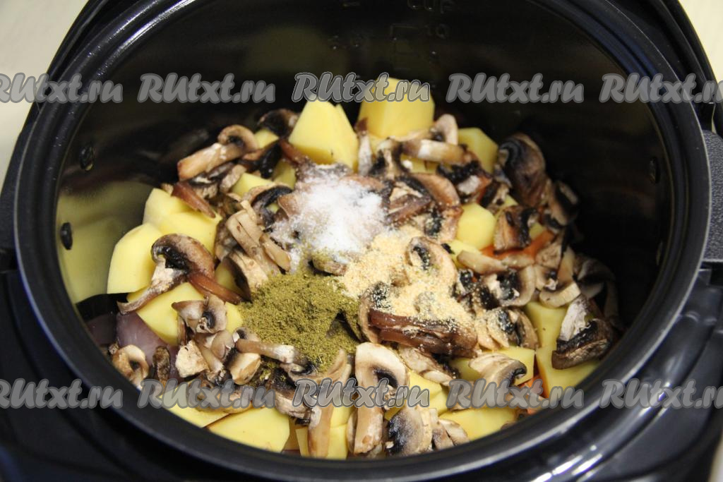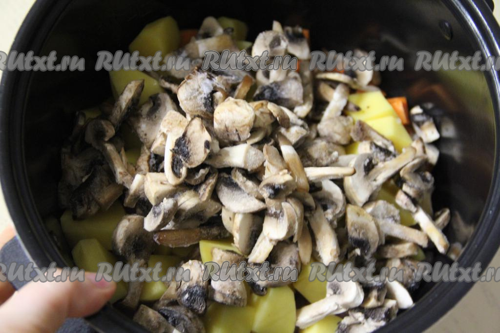 Выложить подготовленные грибы в чашу мультиварки.