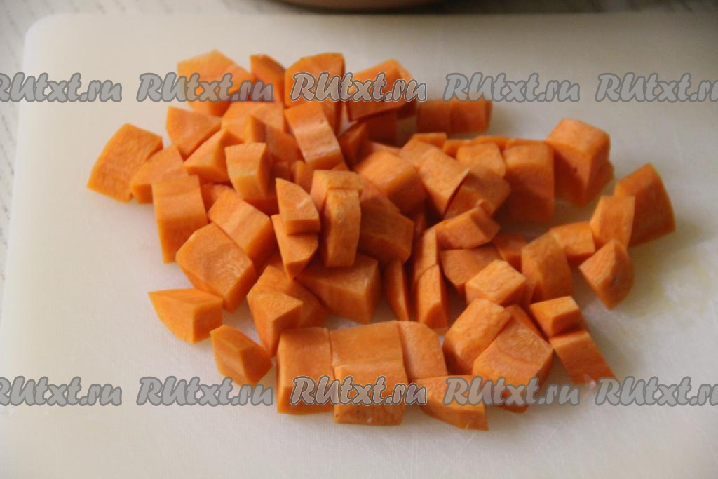 Морковь нарезать на кубики среднего размера.