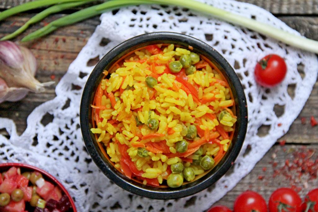 Предлагаю рецепт приготовления овощного плова в мультиварке. Плов, приготовленный с овощами без добавления мяса, получился очень красивым, рассыпчатым, ярким, вкусным и ароматным. Его можно подать в качестве основного блюда или как гарнир к рыбе, мясу или курице. В процессе приготовления я добавила куркуму, она придала овощному плову красивый жёлтый цвет и, конечно, аромат. Рецепт очень простой, в качестве дополнения к этому блюду можно подать маринованные огурчики.