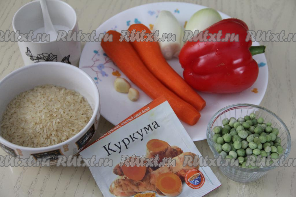 Подготовить продукты. Лук, чеснок и морковь почистить. Болгарский перец вымыть. Рис промыть под проточной водой, затем лишней воде дать стечь.
