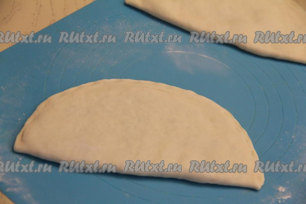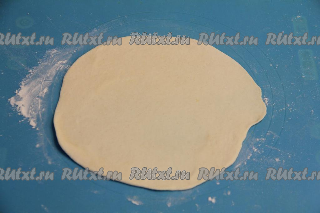 Раскатать каждую часть теста на припылённой мукой поверхности в круг толщиной 2-3 миллиметра.