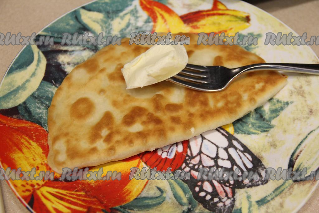 Горячие лепёшки переложить на тарелку и сразу смазать сливочным маслом. Постепенно пожарить все чуду.