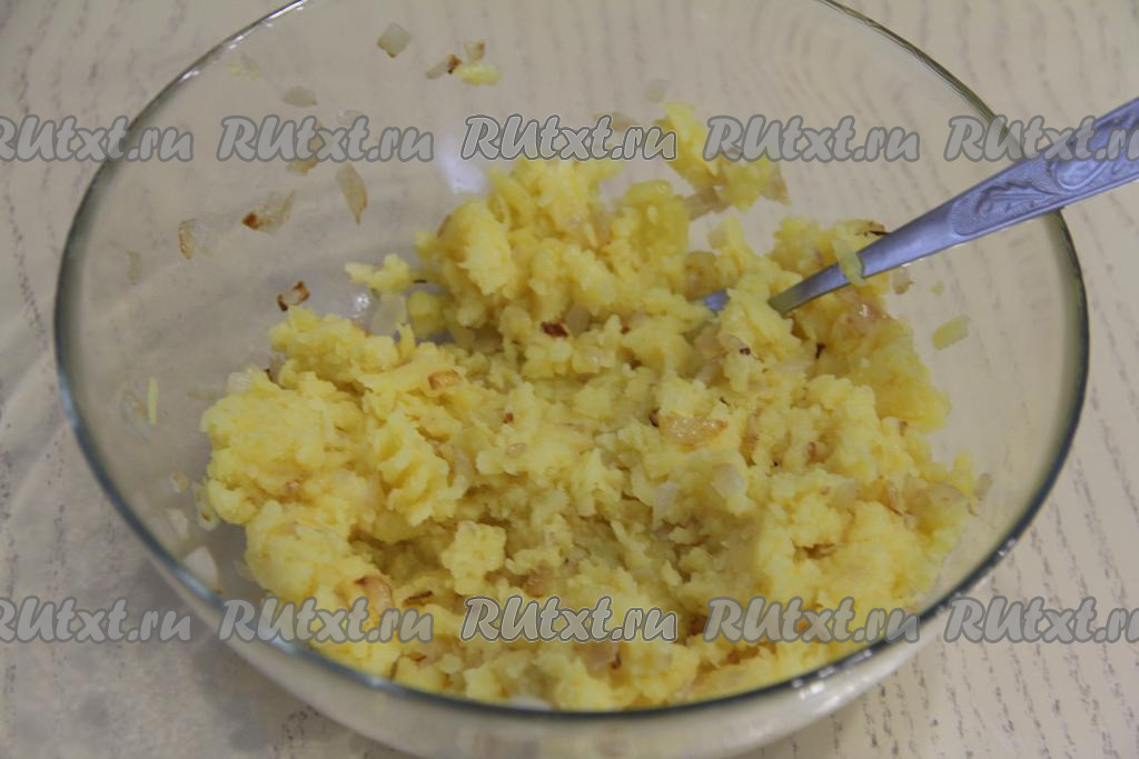 Перемешать картошку с луком и картофельная начинка для чуду готова.