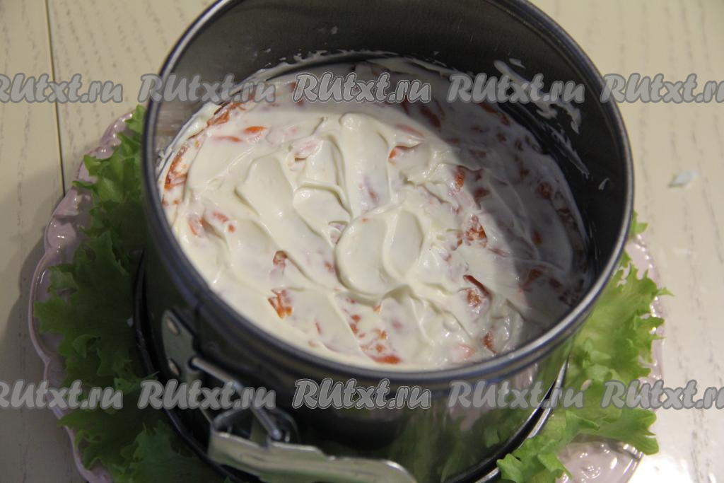 Смазать морковный слой майонезом.