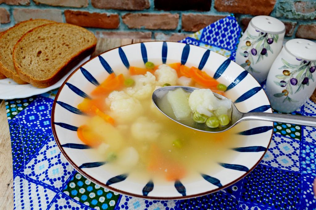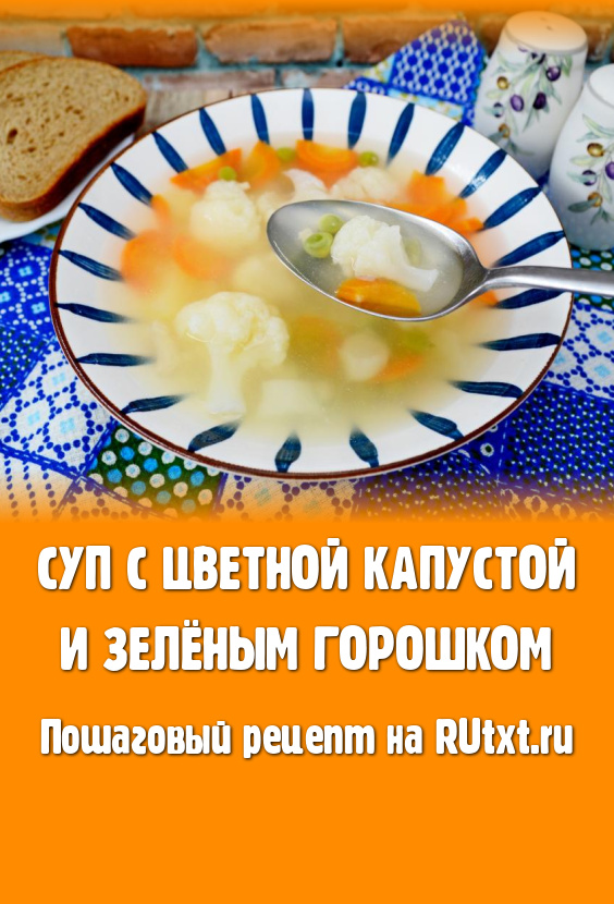 Для себя и своих близких я часто варю суп с цветной капустой и зелёным горошком на курином бульоне. Этот суп получается насыщенным, очень вкусным и аппетитным. Цветную капусту и горошек можно брать как свежие, так и замороженные. Сочетание в тарелке соцветий капусты и горошка неизменно вызывает аппетит. Приготовьте суп по этому рецепту и он хорошо насытит, порадует яркими красками и отличным вкусом!