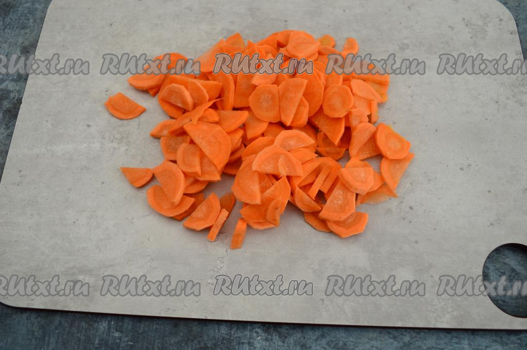 Пока бульон закипает, почистить морковь, нарезать на тонкие полукружочки.