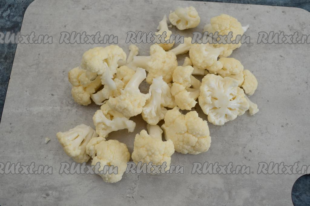 Свежую цветную капусту промыть водой, разобрать на небольшие соцветия. Если капуста заморожена, её можно не размораживать.