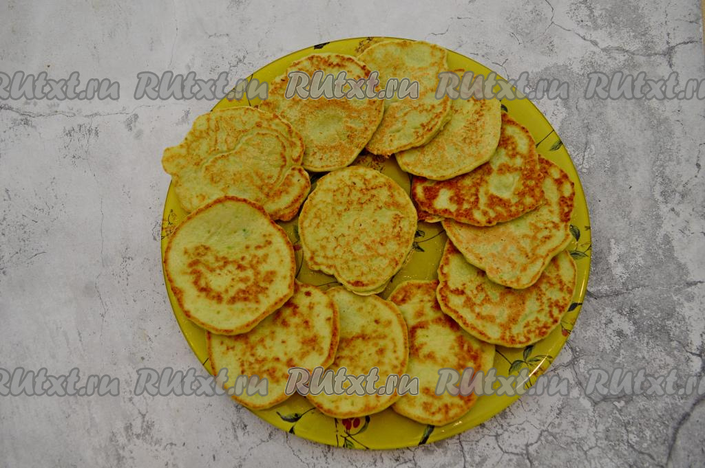 Готовые кабачковые оладьи перекладывать со сковороды на тарелку. Периодически перемешивая тесто, постепенно пожарьте все оладушки (у меня получилось 12 штук).