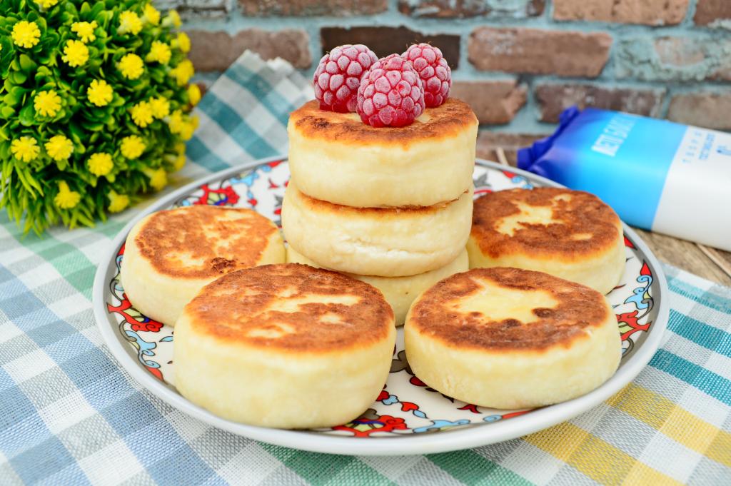 Готовые нежные, аппетитные, пышные сырники можно сразу подавать к столу, дополнив, например, сметаной, мёдом, вареньем, сгущённым молоком.