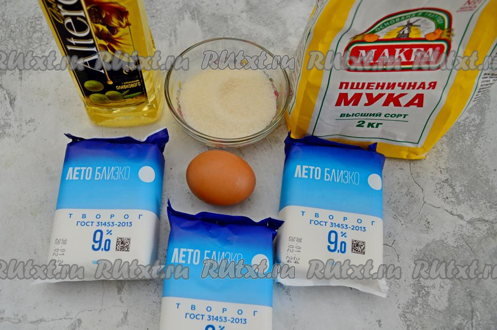 Подготовить продукты. Взвесить сахар и муку. По ГОСТу творог нужен жирностью 9%, а размер яйца должен быть С1. Но я вам советую не так сильно обращать внимание на эти требования, так как на практике жирность творога должна быть более 2,5%, а яйцо можно взять любого размера, так как консистенцию теста можно отрегулировать при помощи муки.