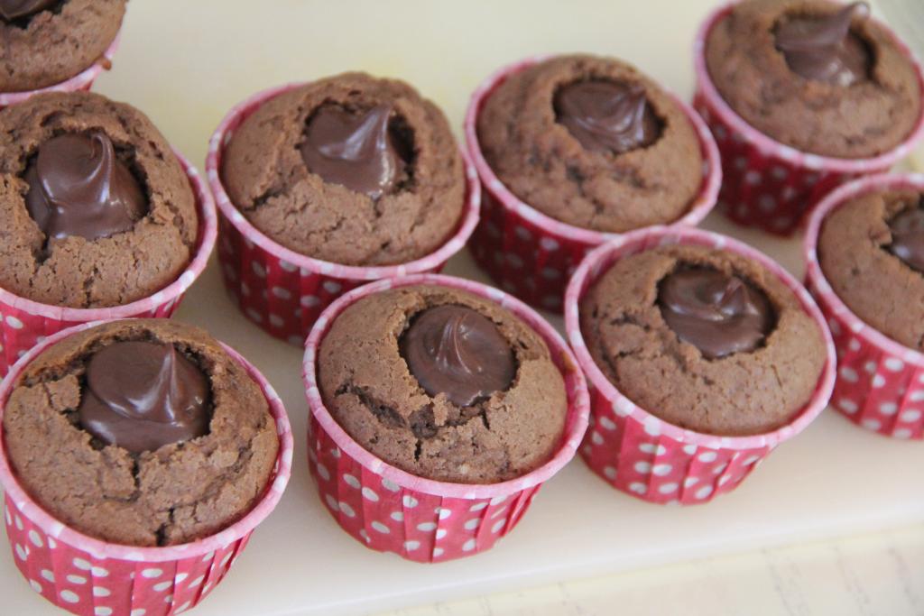 Внутрь каждого углубления в шоколадном кексе выложить примерно 1 чайную ложку нутеллы. Кексы с нутеллой готовы, они идеальны для домашнего чаепития!