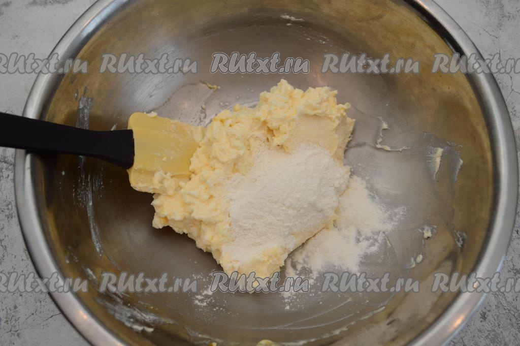Мне всего потребовалось добавить 2 столовых ложки муки. Но количество муки, которое может понадобиться добавить, зависит от влажности творожной массы и величины яйца.