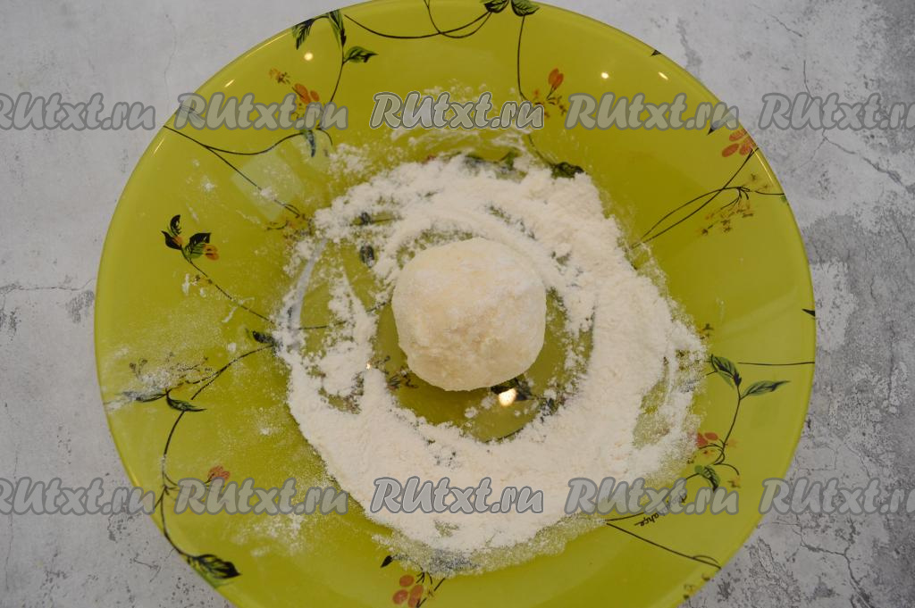 Благодаря тому, что мы лепим каждый сырник влажными руками, тесто не пристаёт к ладоням, а поверхность сырника становится более влажной и хорошо обваливается в муке.