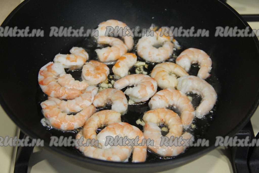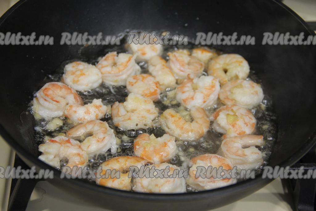 Обжарить креветки с каждой стороны по 2 минуты на среднем огне.