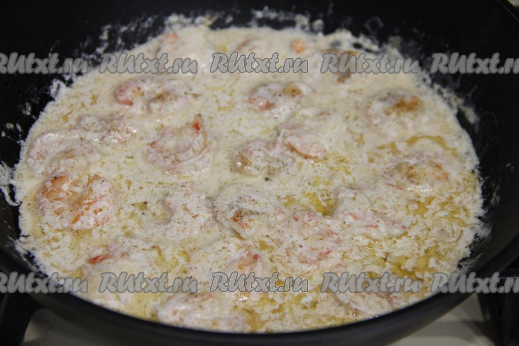 Перемешать сливочный соус и потомить его 2-3 минуты. Соус слегка загустеет.