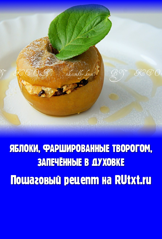 Яблоки, фаршированные творогом, достать из духовки и подать к столу тёплыми, полив соусом, который образовался в процессе запекания, и немного присыпав их сахарной пудрой.