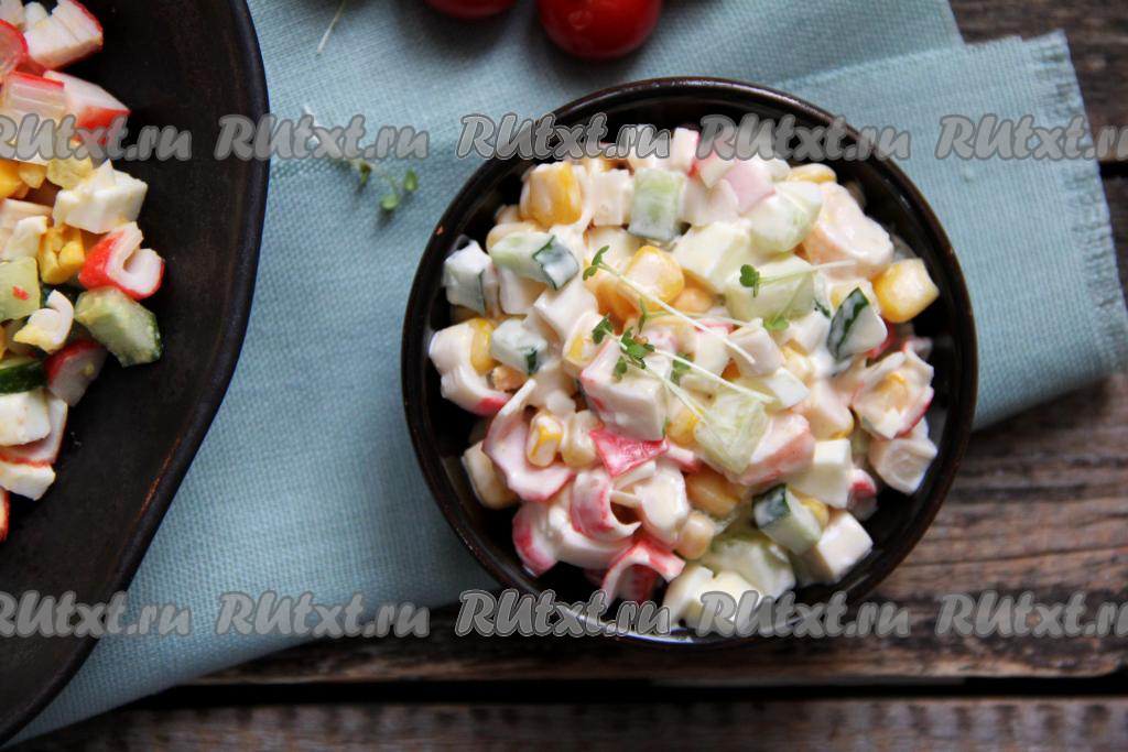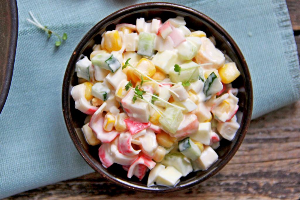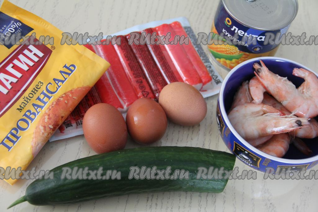 Салаты с креветками становятся украшением любого стола. В этот раз предлагаю приготовить яркий, очень вкусный салат с креветками, свежим огурцом, кукурузой, яйцом и крабовыми палочками. Все ингредиенты в этом блюде отлично сочетаются между собой. Огурчик придаёт этому салату лёгкость и свежесть, кукуруза делает его более сочным, ну а благодаря креветкам и крабовым палочкам он становится нежным и очень вкусным. Всем советую попробовать!