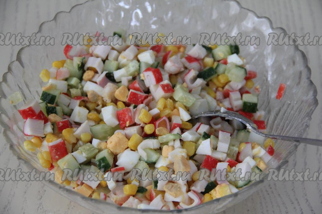 Непосредственно перед подачей заправить салат майонезом, посолить и перемешать.