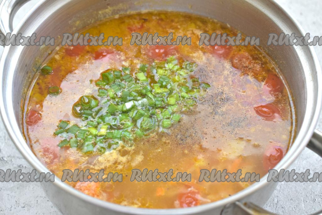 В конце приготовления щи с копчёной курицей по вкусу солим, перчим, добавляем нарезанную зелень (я добавила нарезанный зелёный лук, можно добавить петрушку или укроп), доводим до кипения, провариваем 1-2 минуты на умеренном огне. Убираем с огня, даём настояться под крышкой 5-10 минут.