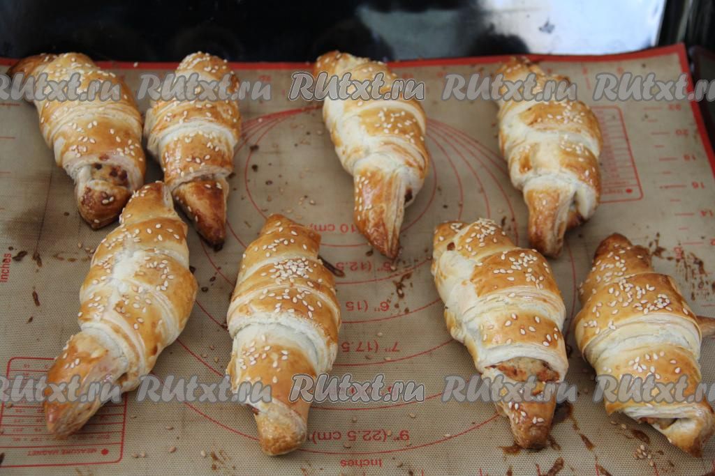 Выпекать слойки с курицей в разогретой духовке при температуре 200 градусов минут 20-25 (до подрумянивания слоёного теста).