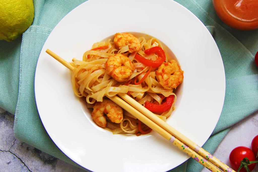 Креветки своим вкусом украшают любое блюдо. В этот раз предлагаю приготовить рисовую лапшу с креветками и овощами в соевом соусе на сковороде. Блюдо получается аппетитным, сытным, пикантным и очень вкусным. Готовится оно и просто, и достаточно быстро. Всем советую попробовать!