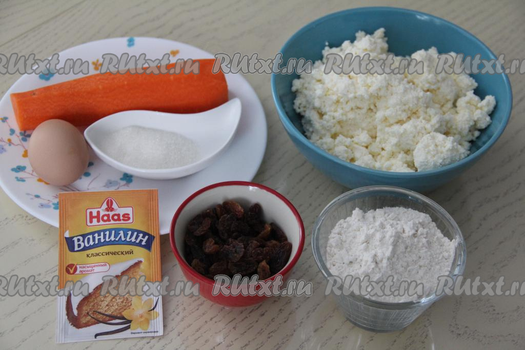 Подготовить продукты для приготовления сырников. Морковь очистить.