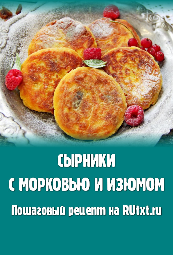 Аппетитные, вкусные, нежные сырники, приготовленные с морковью и изюмом, подать к столу, посыпав, по желанию, сахарной пудрой или дополнив сметаной, мёдом.